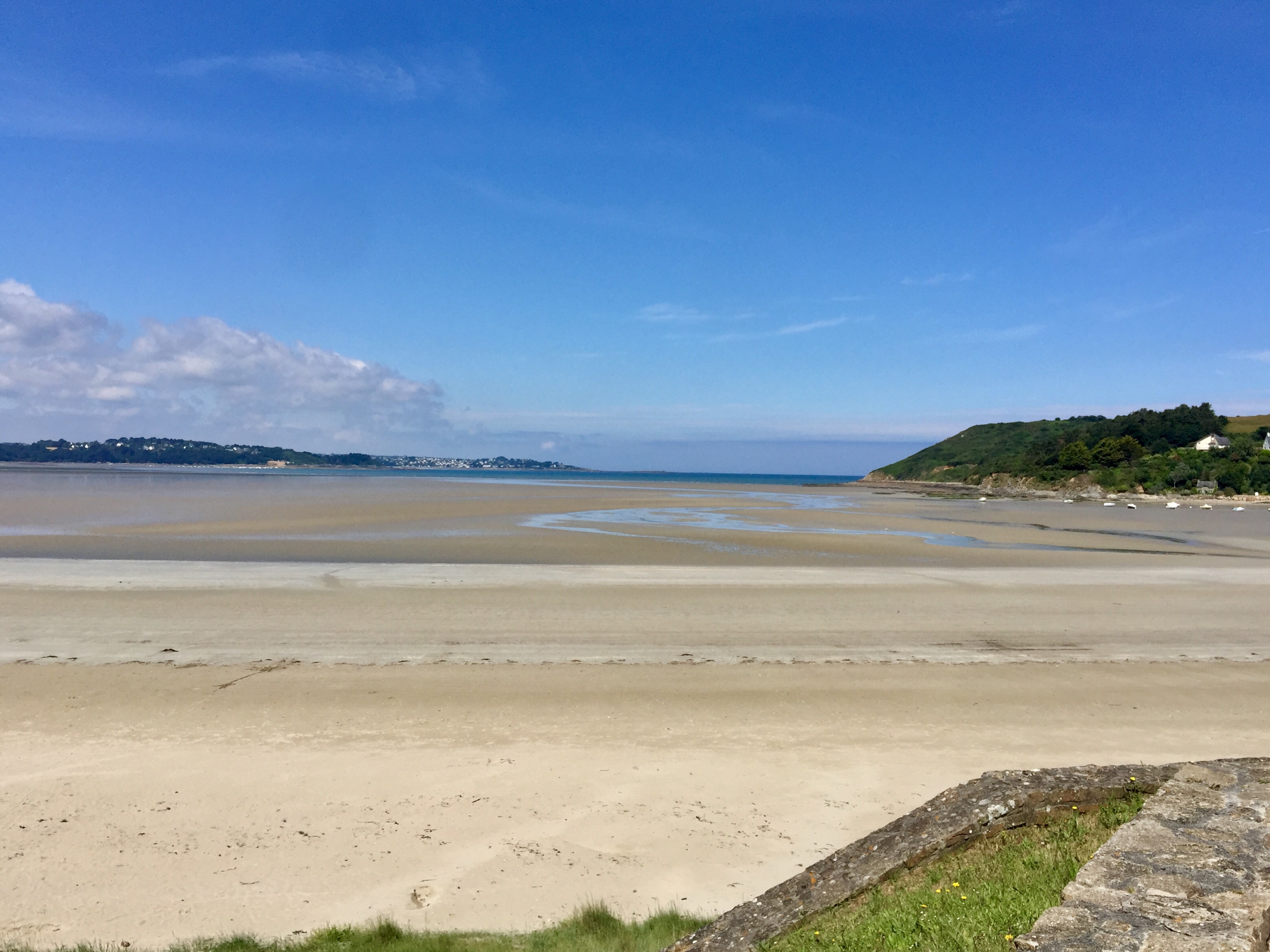 Heute gab es eine schöne Tour mit Finale furioso. Aber starten wir in Lannion. Erstmal wollte ich gemütlich nach Morlaix fahren und dann mal schauen, wie genau ich weiter mache. Daraus wurde nichts, denn es ging direkt den Berg steil hoch und oben auf dem Plateau im schönsten Sonnenschein leicht überhitzt weiter. Gut, daß immer ein Wind geht am Meer.