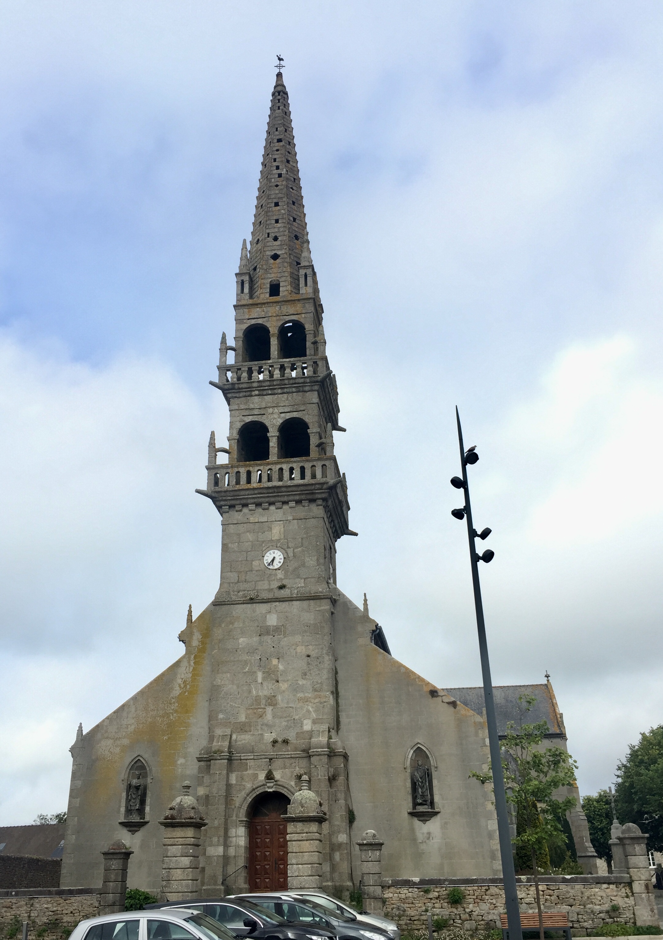 Auf dem Weg nach Saint Pol de Leon fahre an diesem Flussbett entlang, das total entleert ist. Das kennen wir von uns nicht und ist entstanden durch den starken Tidenhub hier. Die Stadt selbst macht sich durch mehrere, sehr ambitioniert in die Höhe ragende Türme von weitem bemerkbar.