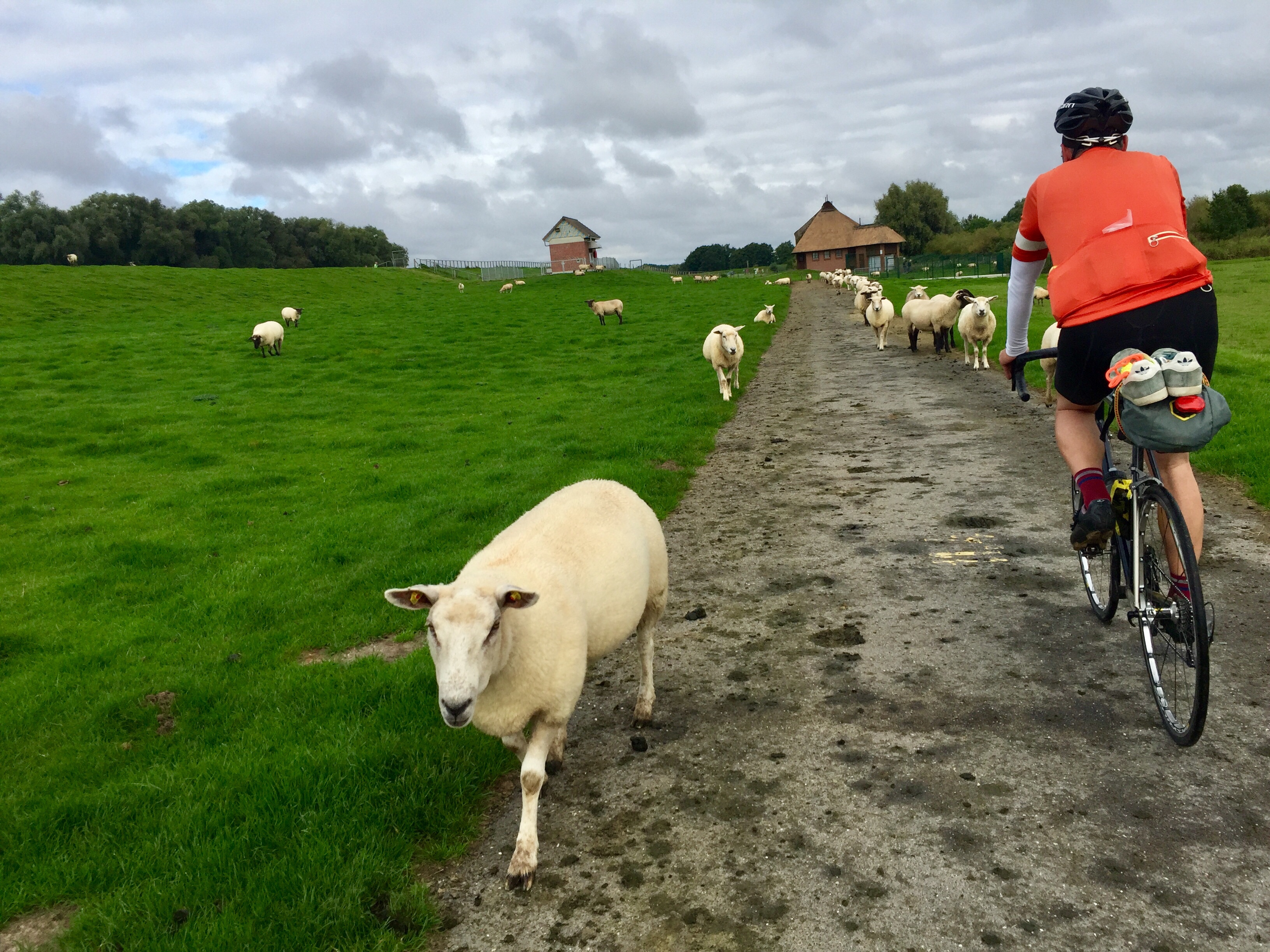 Bei Wedel fuhren wir weiter am Elbdeich entlang durch die Schafe. Sie hatten vor ein paar Wochen ihren Schnitt bekommen und sehen nun sehr kuschelig aus mit ihrem mittellangen Fell.