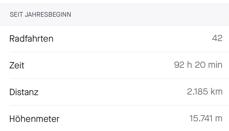 Das habe ich auch erreicht, auch wenn Strava nur 3250,8 km addiert hat. Das eine oder andere Mal war eine Distanzkorrektur fällig, wenn die Uhr leergenuckelt war. Da fehlt dann theoretisch noch eine Meile. OK dann muß ich gleich mit dem Hund kurz Gassi für die letzten 1,8 km.