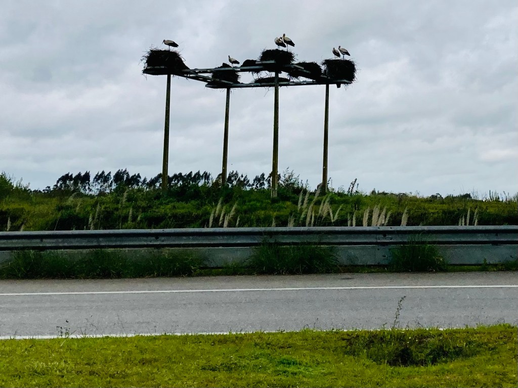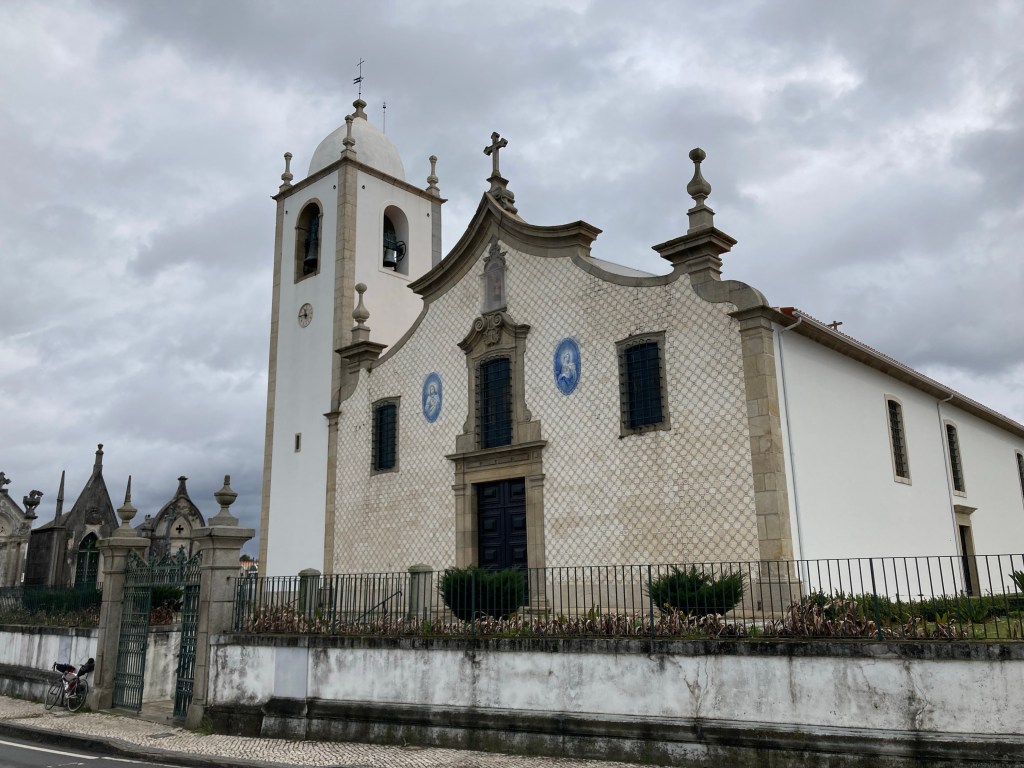 In einem kleinen Ort Salreu hielt ich dann doch das erste Mal an. Nicht wegen der Störche, die konnte ich noch im Fahren knipsen. Aber die Kirche war es mir dann doch wert. Sie ist, wie viele Häuser hier (und sogar manche Wohnblocks) von außen gefliest.