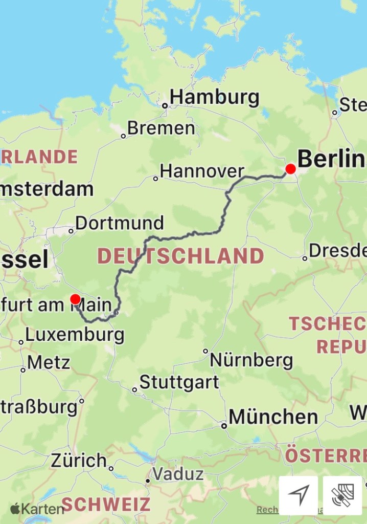 Letztendlich ging das aber alles noch, denn es war voll aber nicht chaotisch. Erst jetzt empfand ich es als wirklich richtig, das Fahrrad nicht mitgenommen zu haben. Die Sensation ist perfekt: Ohne Stau und fahrplangetreu für 9€ einmal quer durch Deutschland in die Hauptstadt – pünktlich! Mit 5 Zügen in knapp 11 Stunden.