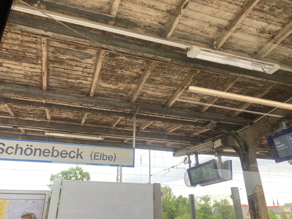 Letzter Umstieg Magdeburg Hbf in den RE1 nach Eisenhüttenstadt. Das liegt hinter Berlin an der polnischen Grenze. Ich habe sogar noch 10 Min Zeit und gehe schnell in das gegenüber liegende Einkaufszentrum, um ein Eis zu holen. So langsam komme ich unter Zucker und kriege auch Durst. Deshalb noch eine überteuerte Flasche Wasser am Bahnhof dazu. Ich vermisse den Gang in den Speisewagen. Wie oft war dieser in all den Jahren nicht oder teilweise in Betrieb, wie oft gab es „nur ein Snackangebot“. Aber es gab auch Reisetage, an denen sie alles hatten was auf der Karte stand, das Bier gab es in einem richtigen Glas und zum Nachtisch eine heiße Schokolade, in die ich immer noch zwei Töpfchen Kaffeesahne und zwei Tüten Zucker extra schüttete. Das kann man nicht bekommen für 9€ einen Monat lang mit der Bahn, logisch!
