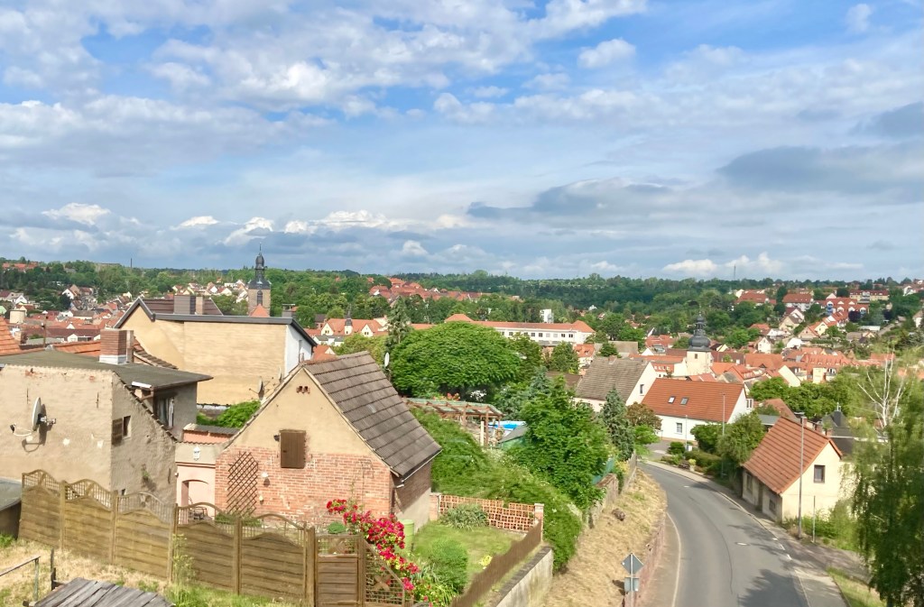 Na, jedenfalls auch an diesem Bahnhof nichts zu spüren von der wichtigsten Schau moderner Kunst. Draußen liegen wellige Landschaften, hügelige Kleinode in der Sonne, und wir fahren zügig über das Eichsfeld und den Südharz.