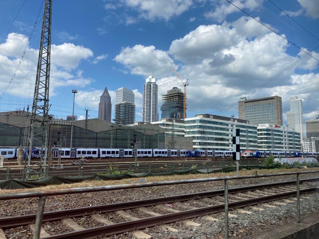 Anders als der Bahnhof soll der Höhenpark hier in Kassel sehr schön sein. Die verbleibenden 29 Minuten reichen nur für ein schnelles Foto und einen Besuch im tegut Supermarkt. Nächster Zug ist der RE30 nach Frankfurt/Main. Er kommt pünktlich und ich versuche wieder Regel 4 – am Ende bzw. diesmal am Anfang einzusteigen. Das ist immer auch etwas Lotto, weil manche Lokführer bei der Einfahrt in den Bahnhof regelrecht verhungern, während andere zu weit durchfahren. So muß man beim Einfahren beobachten, wie sich diese:r verhält und den Standplatz nachjustieren. Klappt wunderbar und ich kann mir den Platz aussuchen. Zug Nummer 4 fährt pünktlich ab. Was soll mir heute noch passieren? Unglaublich, wie gut das läuft.