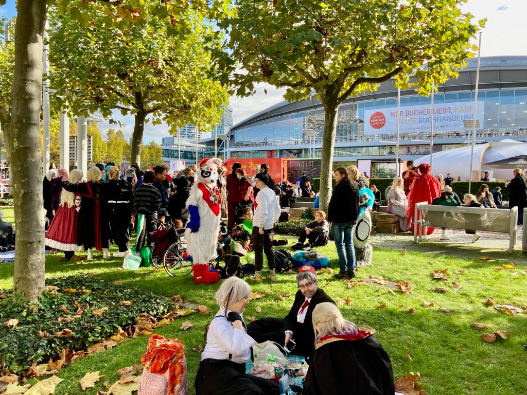 Die Stimmung ist gut und auch draußen ist eine Veränderung des Publikums zu spüren: Viel mehr Cosplayer als den letzten Jahren tummeln sich in der Mittagssonne auf der Plaza. Es sind möglichst realistisch gestaltete Figuren aus Comics, Manga, Video, Film und Fantasy.
