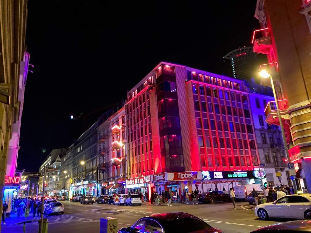 Die Tristesse im Bahnhofsviertel wird nun überdeckt durch die bunt beleuchteten „Eros-Center“, in denen ganz sicher auch viel Elend beisammen ist. Anders als vor ein paar Jahren, als ich mein Auto in einer Parkgarage in der Moselstraße eingeschlossen fand und mir spontan ein Hotel suchen mußte, gibt es heute keine Schießerei oder offen sichtbare Gewalt. Gute Nacht, Frankfurt.