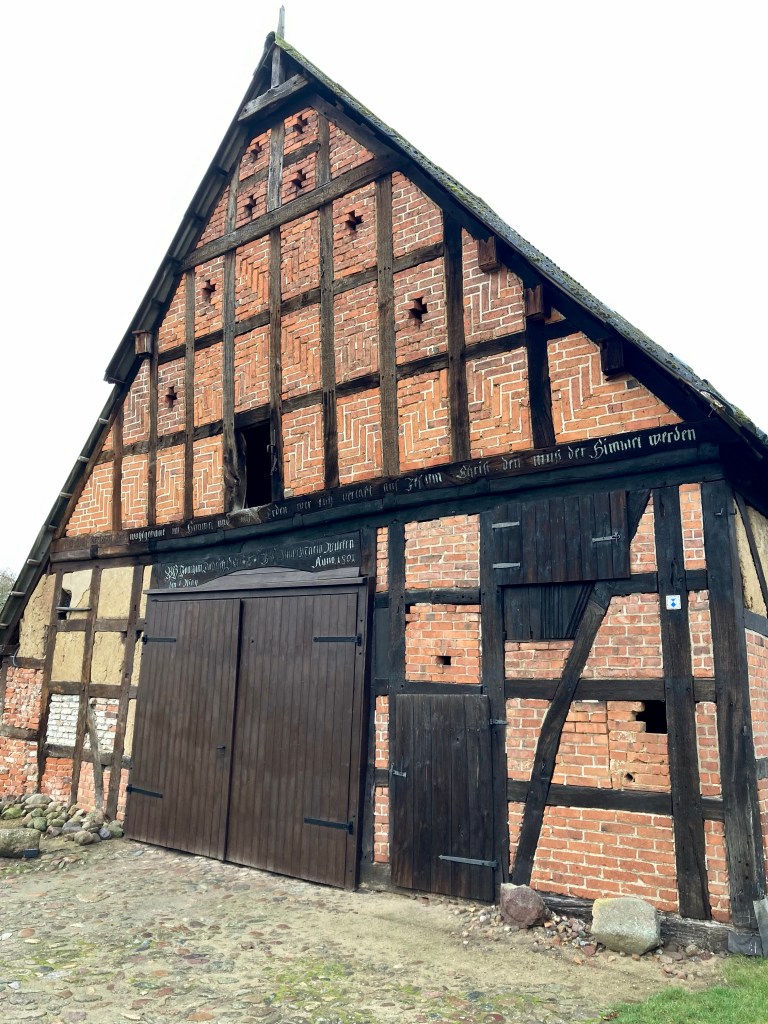 Im Dorf gibt es noch unrenoviertes Fachwerk, das ursprünglich mit Lehmziegeln ausgefüllt war. Der Ausbau mit roten Klinkern kam später.