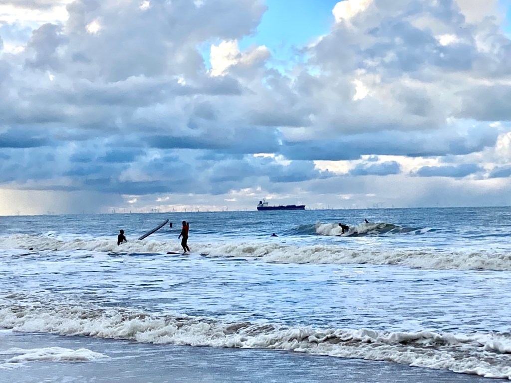 Ist man erstmal um das Westkap bei Westkapelle herum, kommt der Wind aus einer anderen Richtung. Es sind nicht viele Leute unterwegs. Die Hartgesottenen freuen sich, mich zu sehen und haben wie ich ihren Spaß.