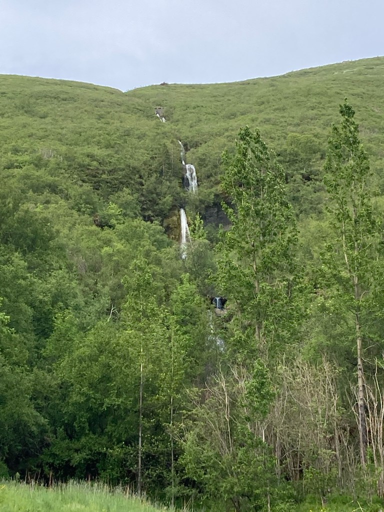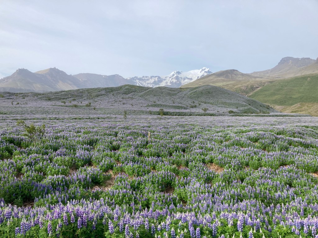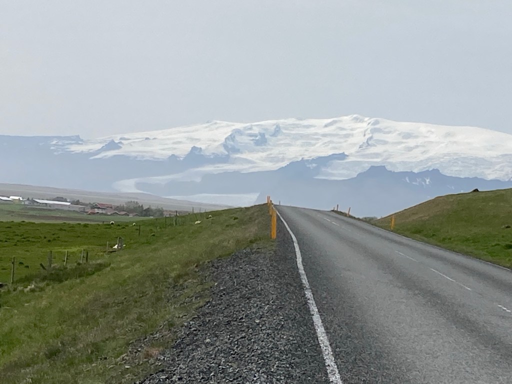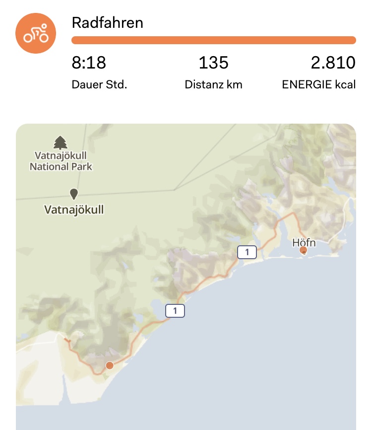 Ich packte zügig zusammen, denn heute waren 130 km angesagt. Aber gleich am Ortsausgang fotografierte ich schon wieder die Pferde vor der Kulisse der Gletscher. Ein großer Teil der Zeit geht für Fotografieren drauf. Aber wahrscheinlich brauche ich die Pausen sowieso zum Ausgleich für die Sitzerei auf dem Rad.