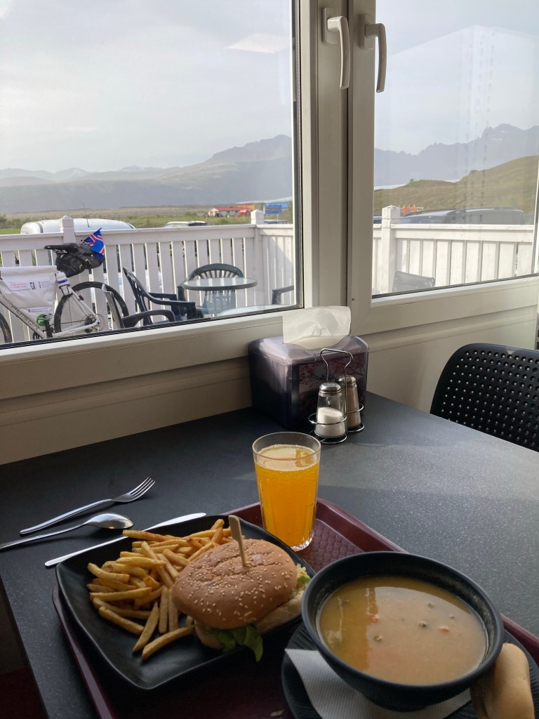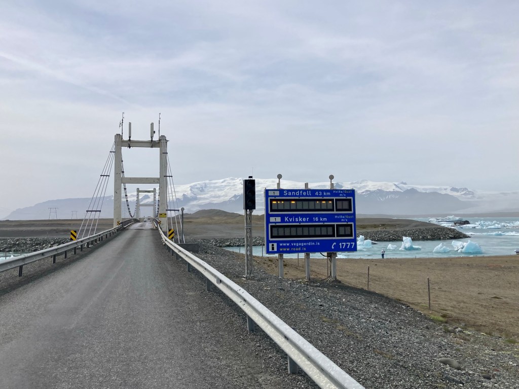 Von weiten sah ich eine lange in der Sonne glitzernde Struktur. Was sollte das sein? Ein Autostau? Wo soll der herkommen? Es war einer von zwei Parkplätzen an der Gletscherlagune. Es waren sehr große Zelte aufgebaut, ein paar Buden, Grillrauch stieg auf. Zivilisation! Ich war bei km 85 und wollte jetzt noch nicht pausieren. Gerade hatte ich mich mit einem Bikepacker aus Toulouse abgeklatscht. Ich hatte ihm von meiner zum Dauergebäck gereiften Spezialität aus Stödvarfjördur abgegeben und wir kauten zusammen das trockne Zeug. Ein ganz toller Kerl, der schon durch halb Europa geradelt ist. Vielleicht treffe ich ihn, Jim und die anderen wieder, die anders herum Island umrundeten. Die meisten kommen mit dem Flieger und fahren ab Reykjavik.