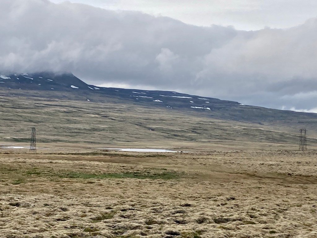 Mal abgesehen von den relativ weit entfernten Bergketten gab es nicht viel zu sehen. Ich fuhr flußaufwärts an der Hvita entlang, aber nimmt Rückenwind, das war nicht schlecht.