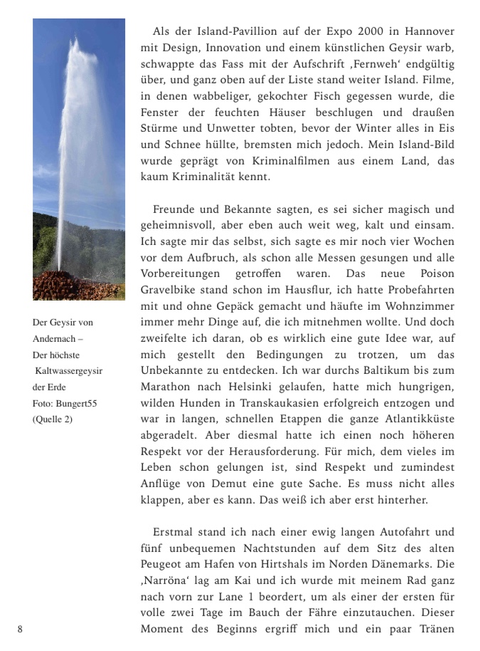 Das Abenteuer Island hinterlässt weiterhin tiefe Eindrücke, die kaum verblassen wollen. Als ersten Schritt zum Buch hatte ich die besten 120 Bilder markiert und an die Fotografin Viktoriia Svyatnenko zur Bearbeitung gesendet. Denn wenn ich die Bilder betrachte, ist mir jedes einzelne Erlebnis so präsent, als sei es gerade passiert. Sie bilden das Grundgerüst für das neue Buch „Abenteuer Atlantik – Mit dem Gravelbike um die Insel aus Feuer und Eis“.