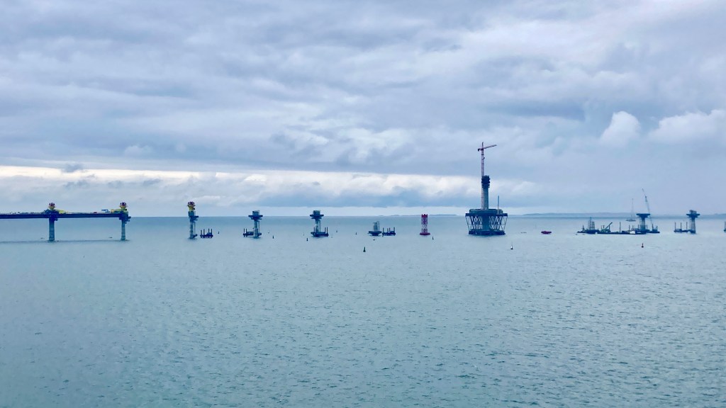 Bei Vordingborg gibt es eine Autobahnbrücke- für mich tabu, eine alte verrostete, auf die man nur auf Umwegen drauf kommt – ich hatte meine Mühe, Senn es gibt eine ganz neue, die wird gerade gebaut. Ein riesiges Ding. Aber die Dänen können sowas, müssen sie auch bei dem vielen Wasser, das sie umgibt.
