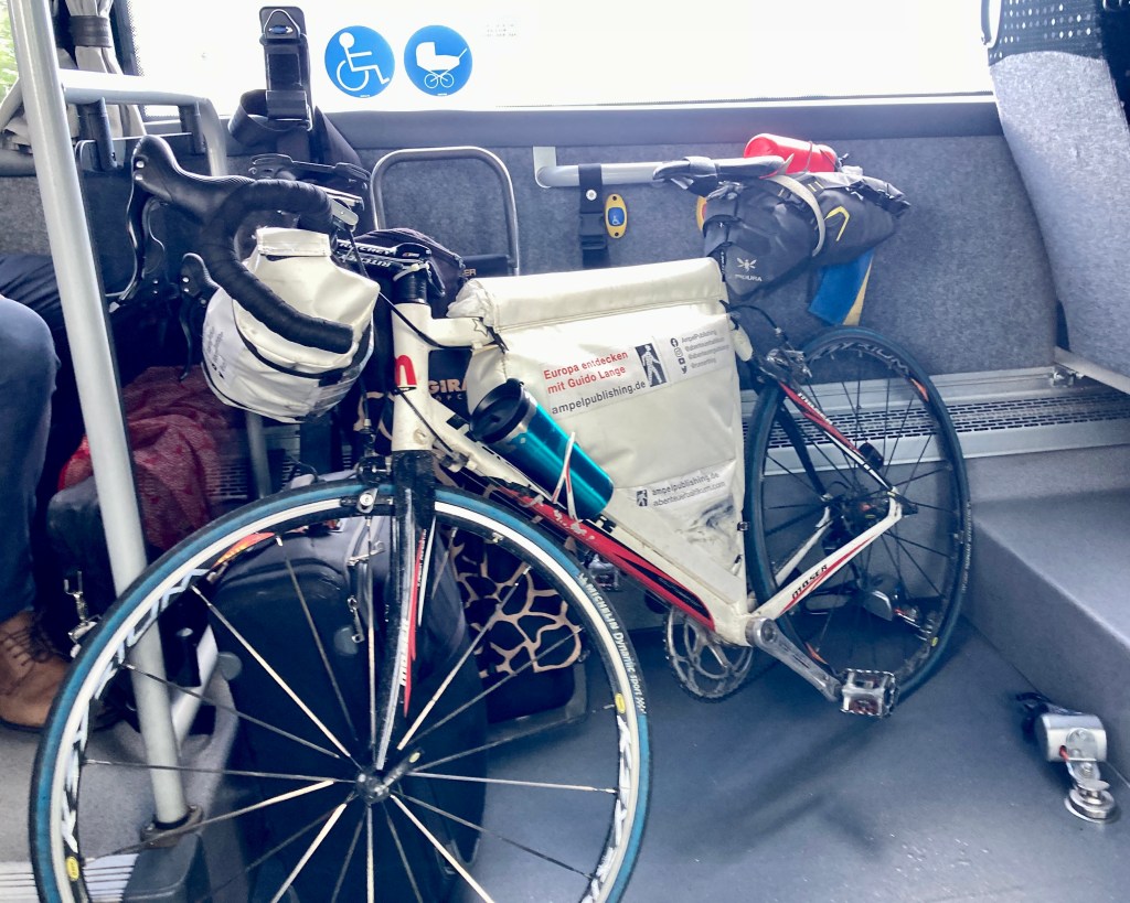 Ich warf das Rad hinten rein ( mal wieder von Vorteil, daß es so leicht ist) und zahlte vorn. Hier in Schweden halte ich immer nur irgendwo die Karte dran. Was der Spaß kostet, gucke ich später mal.