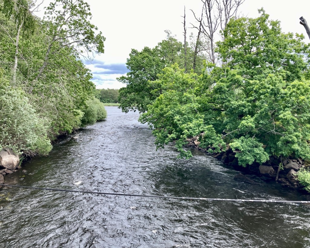 Ich zog durch bis zur Abfahrt Blankaholm. Hier hätte ich eigentlich übernachten wollen aber es gab dann eben nur Tofvehult 18 km weiter. An der Ausfahrt standen Schilder, daß es was zu essen gäbe, aber da war nichts. Ich düste 3 km bis runter ans Wasser, aber es gab nur ein paar Sommerhäuser. Ich machte mir Gedanken, daß ich dringend was zum Abendbrot brauchte und auch zum Frühstück. Ich hatte angenommen, hier irgendwo einen Laden zu finden. In Google zeigte es eine „Naturbutik“ aber auch die gab es nicht (mehr).