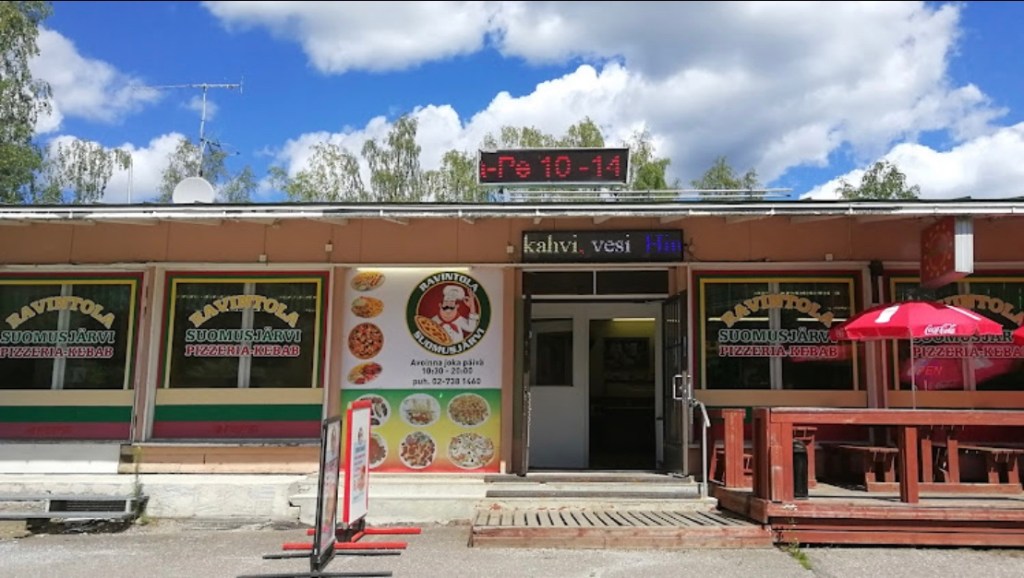Nach 83 ereignisarmen Kilometern war der Tank leer. Es war nicht nur warm, sondern beinahe heiß und meine Akkus waren auch alle. Diese Pizzeria war ideal. Sie wird von einer migrantischen Familie betrieben, sonst wäre, wie überall and er Strecke, das Restaurant einfach verwaist. Der gute Service (Salat, kaltes Wasser, Kaffee und Eiswürfel inklusive) und das gute Essen schien sich herum gesprochen zu haben und der Laden war nicht so spärlich besucht, wie viele ähnliche, die ich hier und in Schweden besucht hatte. So eine Art Pizza/Kebab/Salat waren meine wichtigsten Anlaufstellen geworden. Trotz des guten Geschmack hing mit Pizza langsam zum Hals heraus.