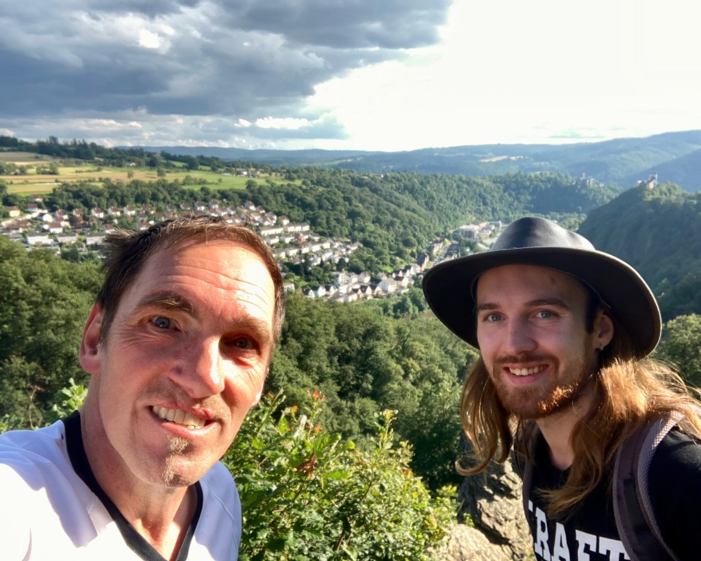 Mit Jonas wanderten wir auf dem Lahnhöhenweg bis kurz vor Bad Ems und schmiedeten Pläne, besprachen Projekte und hatten einen schönen Abend. Denn auch er wird ein Buch machen über sein Abenteuer in Nepal. Es erscheint vielleicht schon im nächsten Frühjahr. Auch dazu gibt es eine unautorisierte Coveridee.