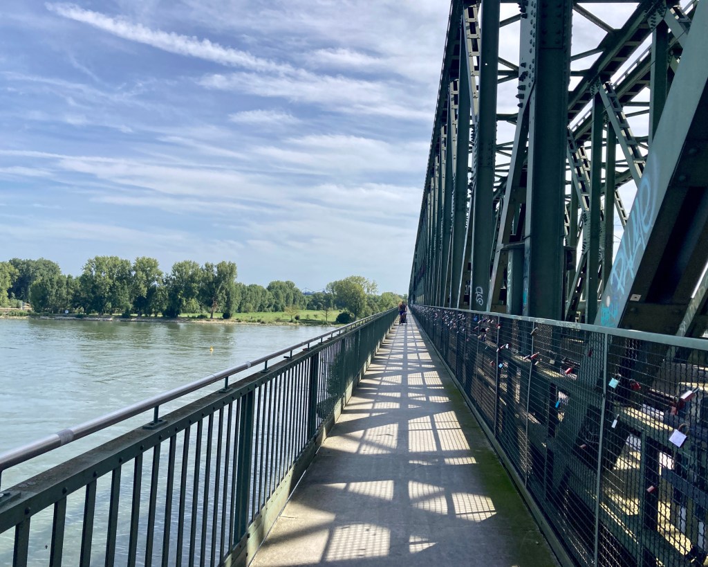Schon um 11 Uhr sitze ich bei km 100 am Dom in Mainz mit einem Kaffee für die erste Pause. Hier mündet der Main und es geht durchs Rhein-Main-Gebiet flussaufwärts. Hoffentlich komme ich da gut durch bei all den Straßen und Wegen.
