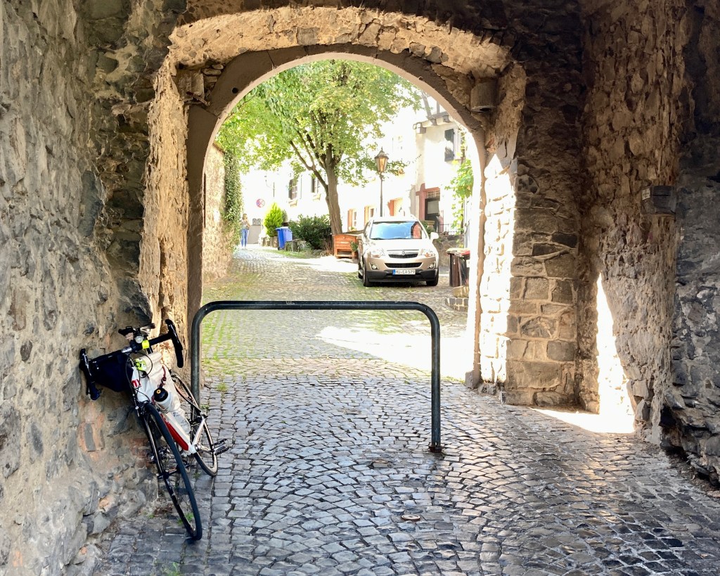 Es sind wenige Autos unterwegs und ich fliege dahin. In Bingen suche ich den Einstieg nach dem Rheinuferweg und frage einen betagten Mann danach. Der blüht auf und erzählt mir, wie und wohin ich fahren soll. Dabei fällt mir auf, daß er früher selbst viel mit dem Rennrad unterwegs gewesen sein muß. Das war der Grundstein für seine Fitness im Alter. So ähnlich schwebt mir das auch vor, aber wer weiß schon, was kommt.