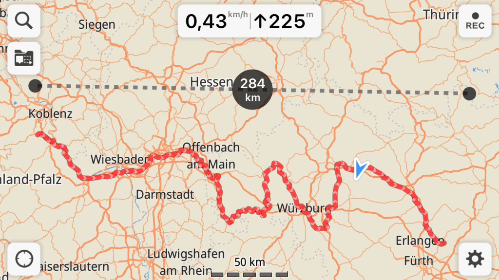 Was für eine Tour! Von Koblenz (Nähe) nach Nürnberg (Nähe) entlang von Rhein, Main und Kanal auf 544 km in drei Tagen. Ich hatte mir das so überlegt und dann hab ich es gemacht mit Geduld und Zähigkeit.
