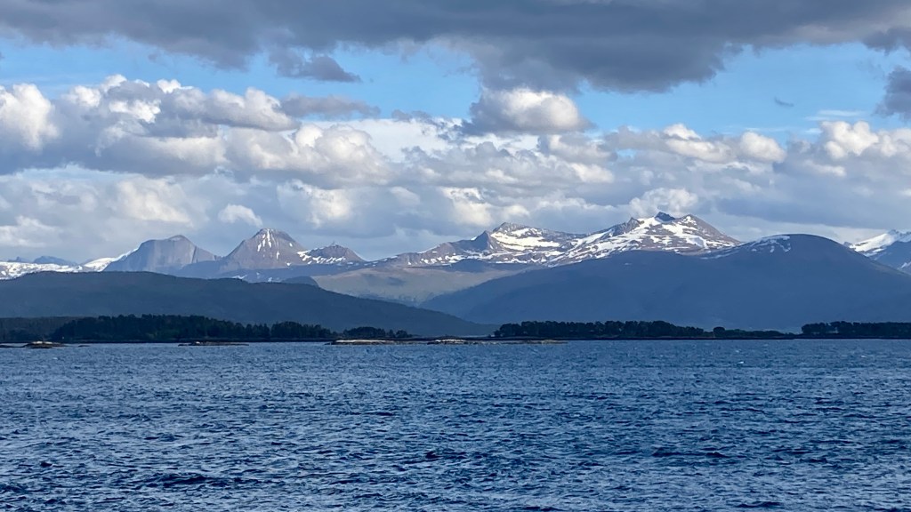 Kurz vor Fähre Nunmer 2 Festøya – Solavågen machte ich dieses Bild von Barstevik – ein Dorf mit schneebedeckten Bergen am Horizont – wie gemalt. Das Wetter wurde immer besser, je mehr ich nach Norden kam. Immer wieder Wolkenlücken und aber auch kalte Böen.ich glaube, besser geht es nicht. Den Vorrat von 6 Sonnentagen haben wir gleich zu Anfang verpulvert.