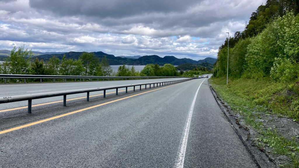 Die E6 zog sich dann über einen langen Anstieg und es wurde immer enger. Die meisten fuhren rücksichtsvoll, ich selbst tat meinen Teil und konzentrierte mich nur aufs fahren. Es sind jetzt auch mehr Wohnmobile aus Deutschland dabei. Nur zwei von Hunderten waren nicht so nett und sehen das Rad auf der Straße als Problem. Nein, es ist Teil der Lösung.