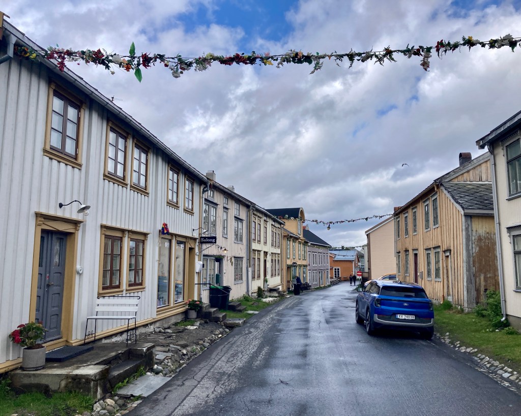 Ich gurkte mit dem Rad unschlüssig herum, eigentlich auf der Sichens h einem Supermarkt und fragte eine Frau, ob das denn hier schon das Zentrum sei und ob es nicht eine Art Uferpromenade mit einem Café gäbe. Sie sagte, letztes nicht direkt aber gleich die Prallelstraße sei die bekannte Sjøgata mit den bunten Holzhäusern und da gäbe es auch Cafés.