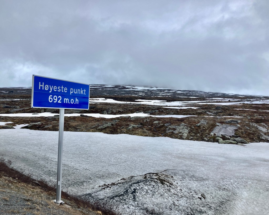 Oben hieß in diesem Fall auf dem Saltfjellet. Es wurde immer kälter, irgendwann keine Bäume mehr, links und rechts nur Schnee und Eis und eine Leuchtschrit informierte: „Saltfjellet åpenet“. Wenn sie das schon betonen müssen, daß offen ist….
