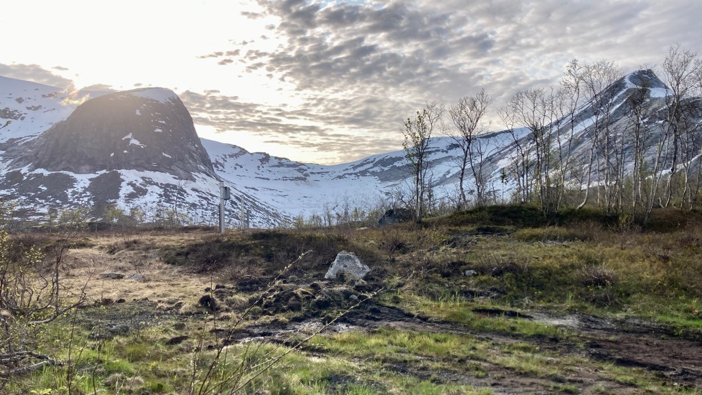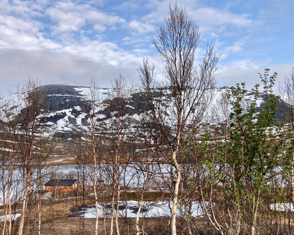 Oben gab es eine wunderbaren, noch zugefrorenen See, die Birken krüppelten vor sich hin und hatten noch nicht ausgeschlagen. Es war eine tolle Szenerie. Der Straßenverkehr war bei Nahe Null und wenn, dann kamen 6 Autos auf einmal und es kehrte minutenlangen Stille ein. Der dritte „Gipfel“ in drei Tagen. Ich war beigesteuert, wenn auch kurz vor Tiefentladung.