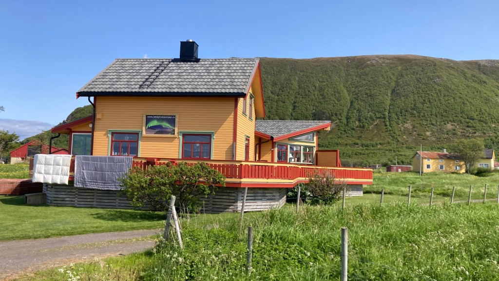 Ich saß dann gegenüber im ersten Stock eines Hauses und aß eine Portion Nudeln, da fragte ich zweimal, ob geöffnet sei, denn es war alles dunkel. Ich beobachtete, wie innerhalb einer Stunde bestimmt 80 Leute an die Klinke Fasten und ungläubig waren, ob wirklich zu war. Als ich wieder runter kam, um mein Rad zu schnappen, brannte weiter Licht und sie machen immer noch das Cafe sauber… Auch gestern das Café in Stokmarknes schloß 16 Uhr.