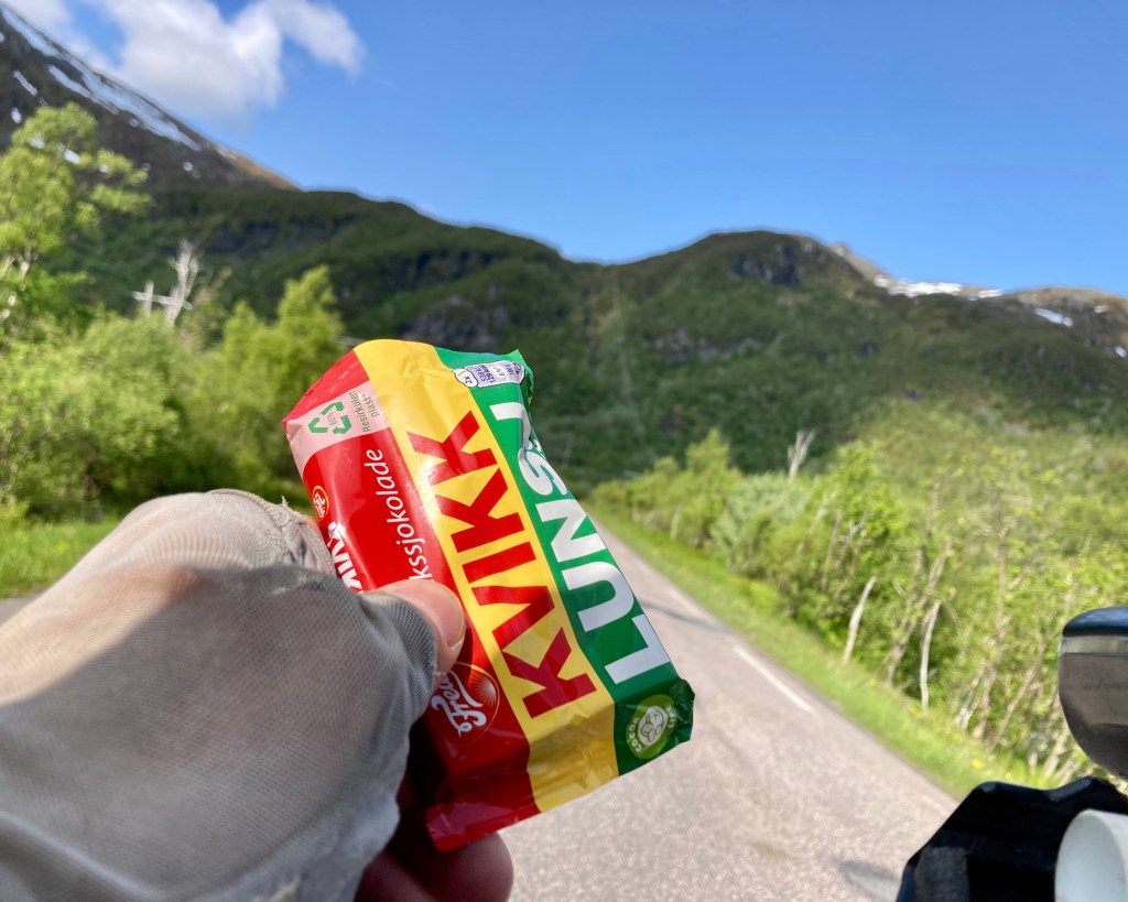 Kurz vor Melbu kam mir Rene entgegen. Er ist unterwegs von Bern zum Nordkap und macht daraus sogar eine Spendenreise. Das gesammelte Geld kommt dem „Gassenbus“ in Bern zugute, eine Obdachloseninitiative. Schaut mal auf https://www.renesride.com
