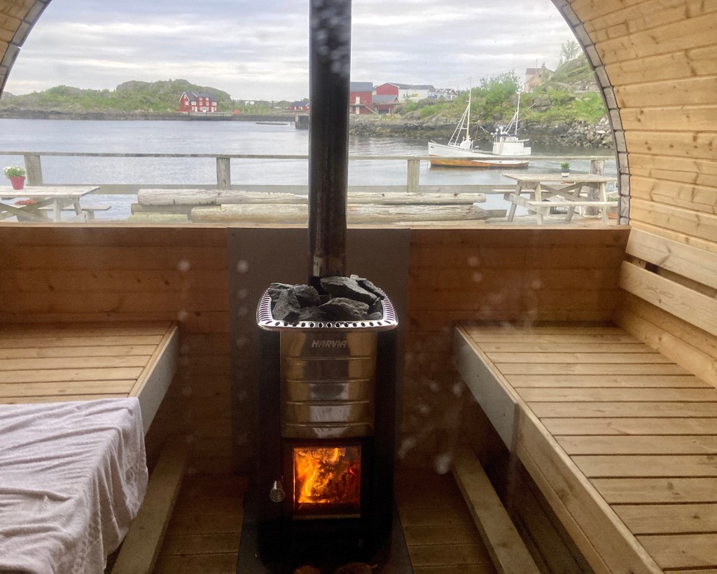 Mit Mattias, einem der Inhaber des Hostels, und einem Paar aus Deutschland saß ich in der Sauna (niemals nackt auch hier in Norwegen!). Er sprang zwischendurch mal in das eiskalte Hafenbecken und kam mit Eimern weiteren Bier zurück, mit dem er auch aufgoß.