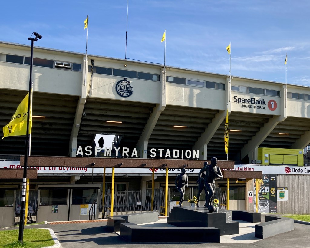 Ich googlelte, wie weit das Stadion ist des spätestens mit dem Halbfinale in der Euroleague zur Berühmtheit gelangten Clubs Bodø/Glimt. Nur 800 Meter!