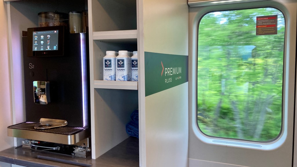 Es gab auch im Oslo Zug diese Kaffemaschine und ich hatte wieder Wagen 1 Platz 1. daran kann man sich gewöhnen.