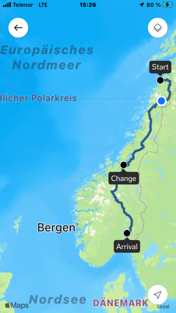 Ich traf mich am Bahnhof mit Sontje, mit der ich ein Stück ab Bergen gefahren war. Sie würde heute in Bodø ankommen, überglücklich, mit tausend Erfahrungen , nach einem Felgenriss, Tagen mit Regen, Kälte, Wind und Höhenmetern und sehr sehr vielen schönen Dingen.