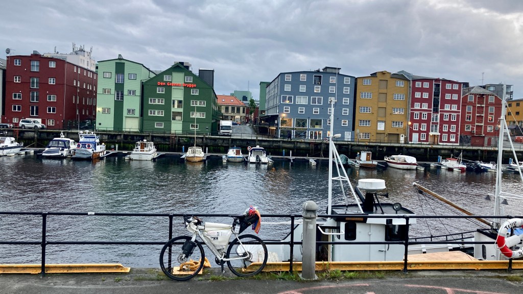 Ich hatte mich anders anzuziehen und die Radklamotten zu verstauen. Eigentlich easy, denkt man, aber die klobigen Schuhe sind immer lästig. Ich hatte auch genau zu überlegen, worauf ich in 12 Stunden bis Trondheim verzichten konnte, denn das Rad würde in Wagen 4 untergebracht, da kam ich nicht dran.