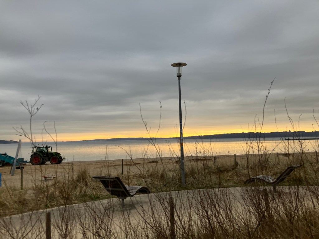 Über Abenraa und Haderslev kommen wir bei km 95 nach Kolding – ein Fixpunkt, weil er die Hälfte der Tour markiert. Aber das nützt uns wenig, denn bei km 67 an einem Rastplatz- Café sind zum ersten Mal die Speicher leer. Denn es sind nur etwa 3-4 °, und wir haben nach gemütlichem Beginn auch schon mal ein höheres Tempo angetestet (3 Rennradler hatten uns überholt)… Das zieht Energie.